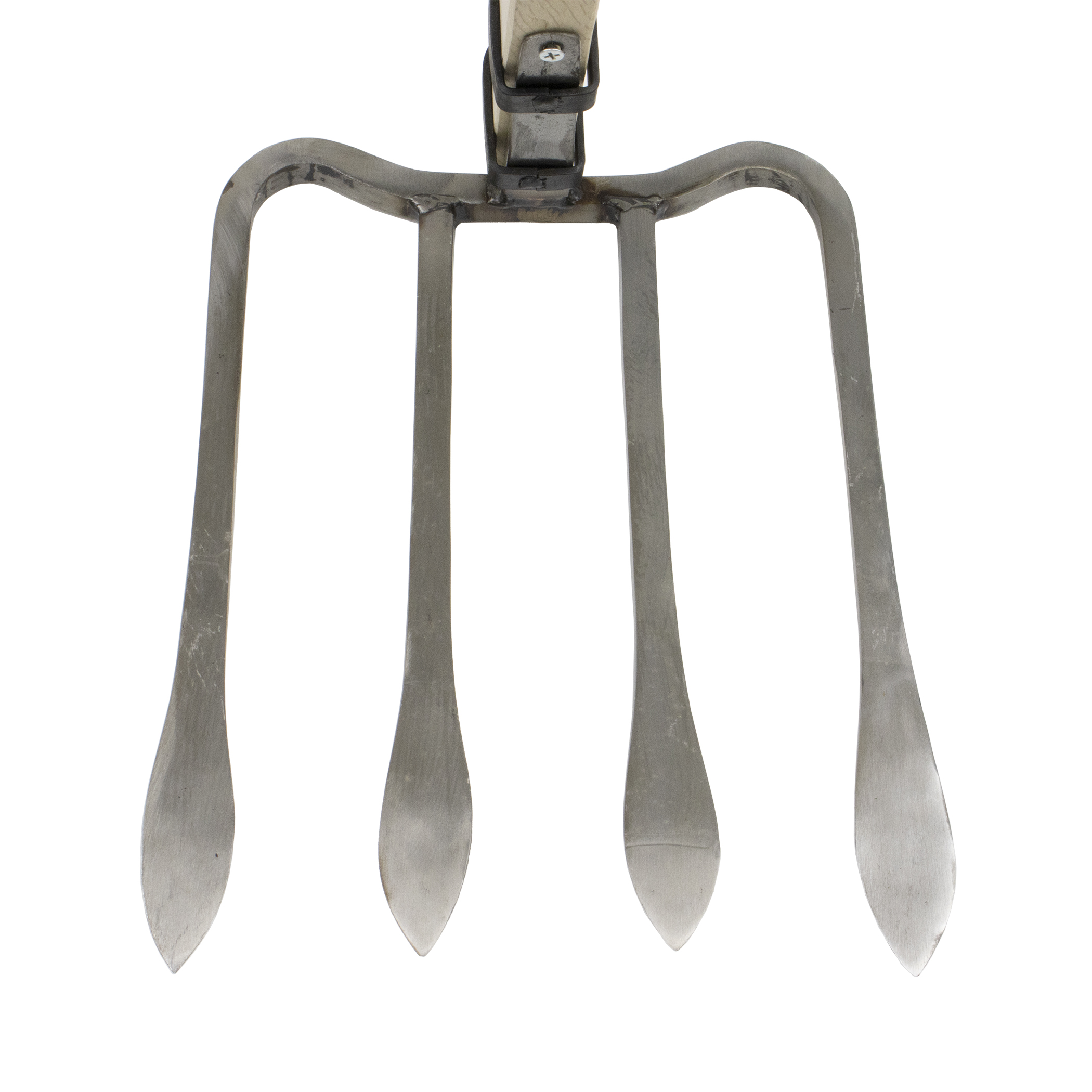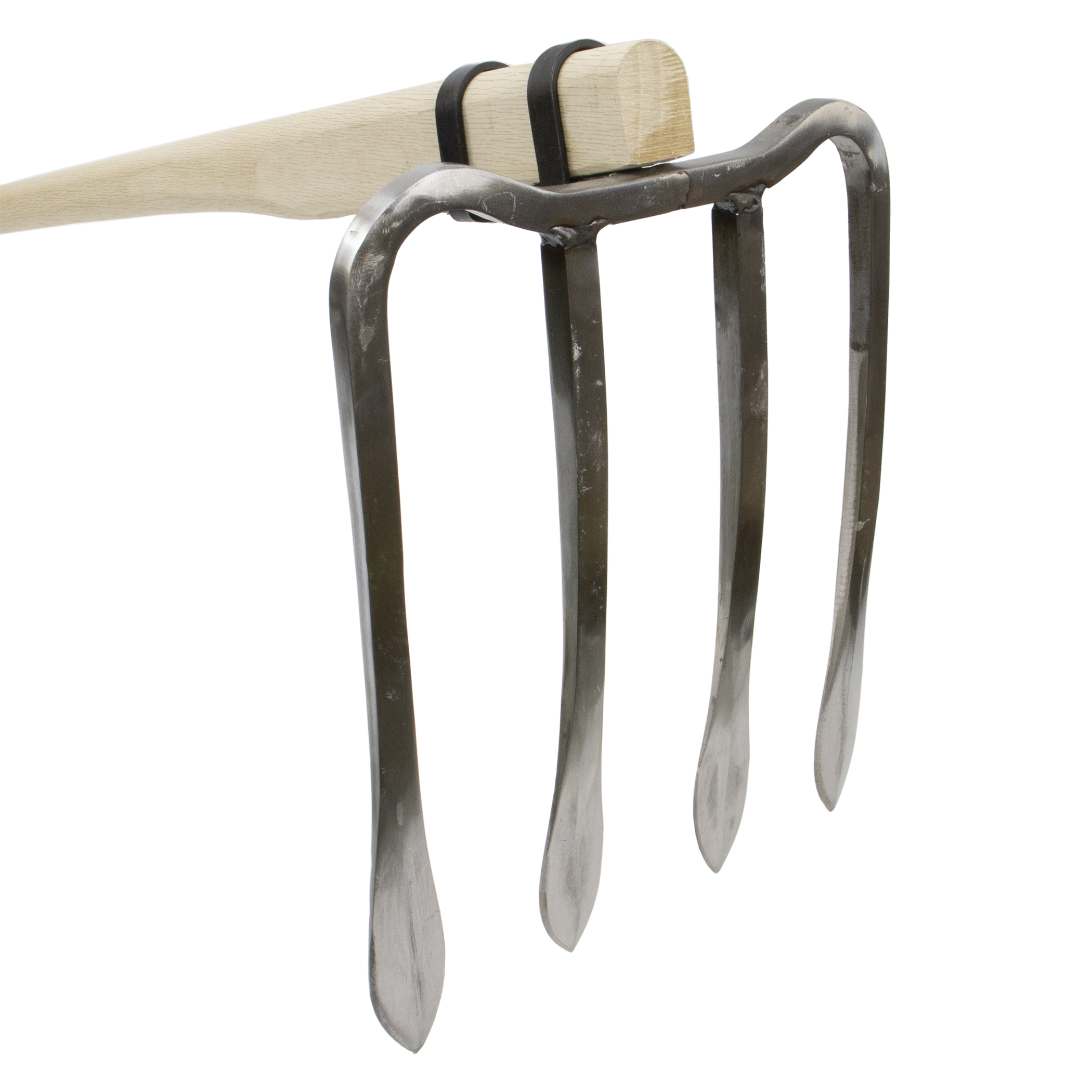 強力に土に食い込むマムシ型四本鍬です。