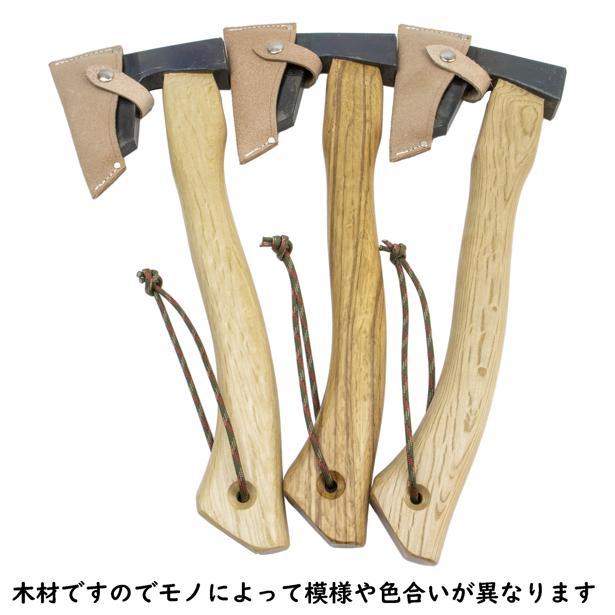 割込地型鉞 570g ニス塗ボタン柄390mm 革サック・紐付 水野製作所×マサコー山口木工×コジマ マサカリ (4511149386093)