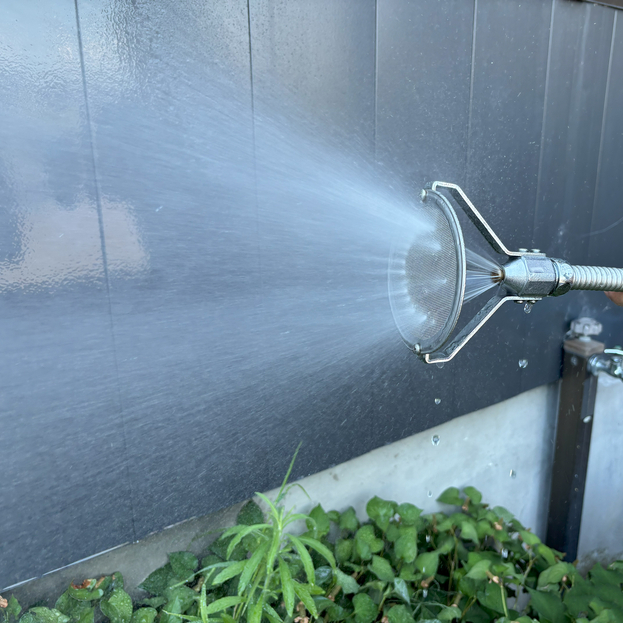 ・高圧の水が網に当たることにより、霧状の散水ができます。