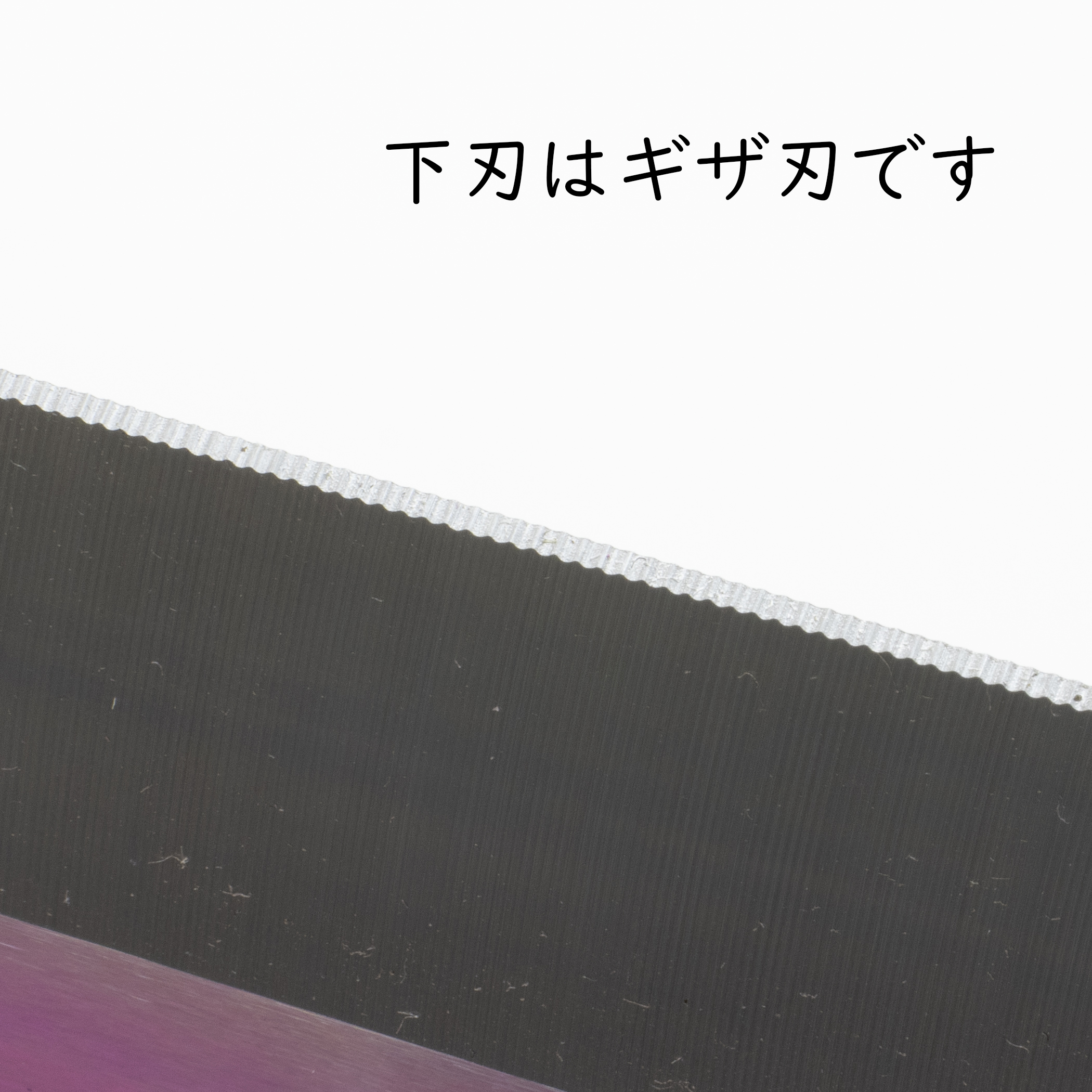 上刃は直刃、下刃はギザ刃になっており、滑りやすい素材もしっかり固定して切断できます。
