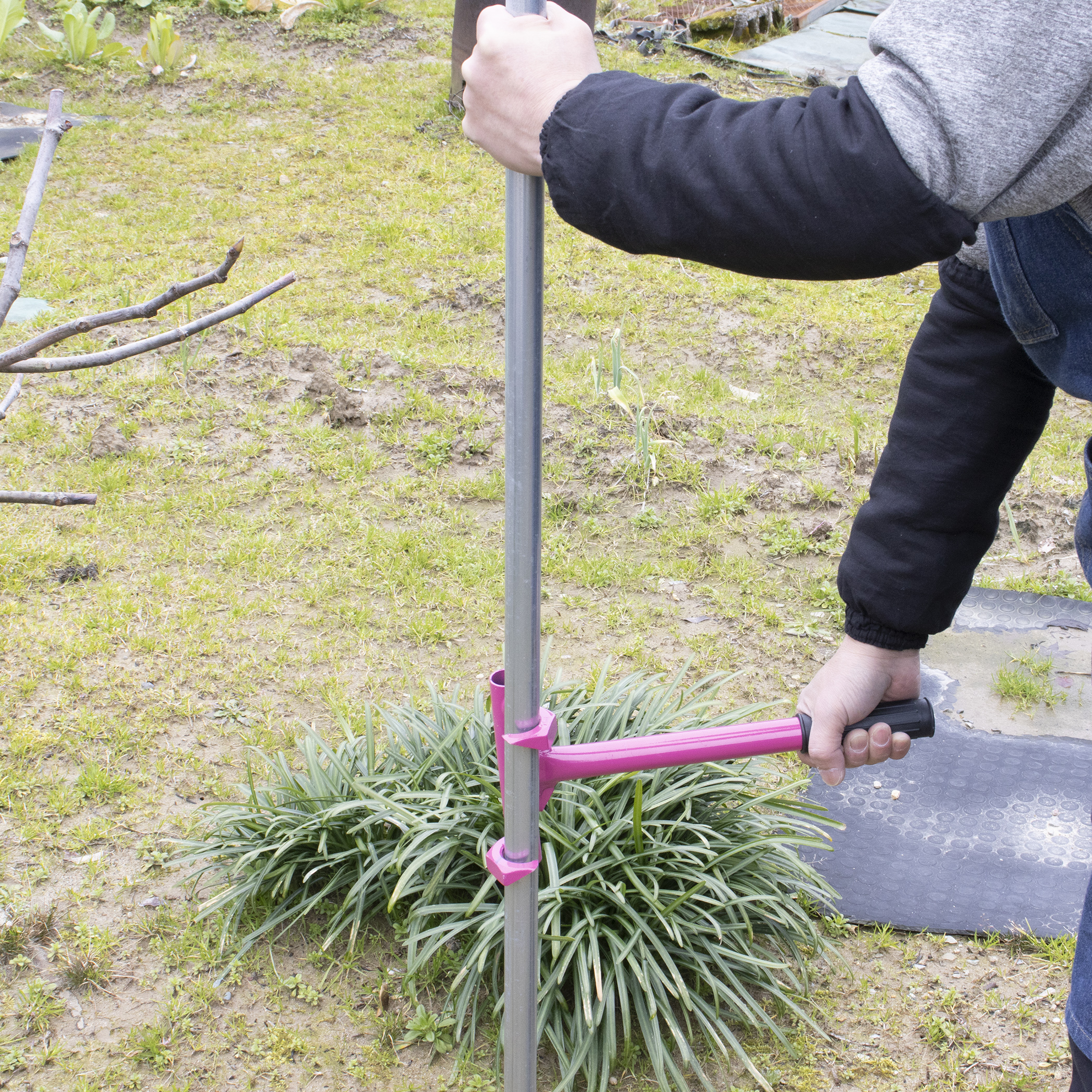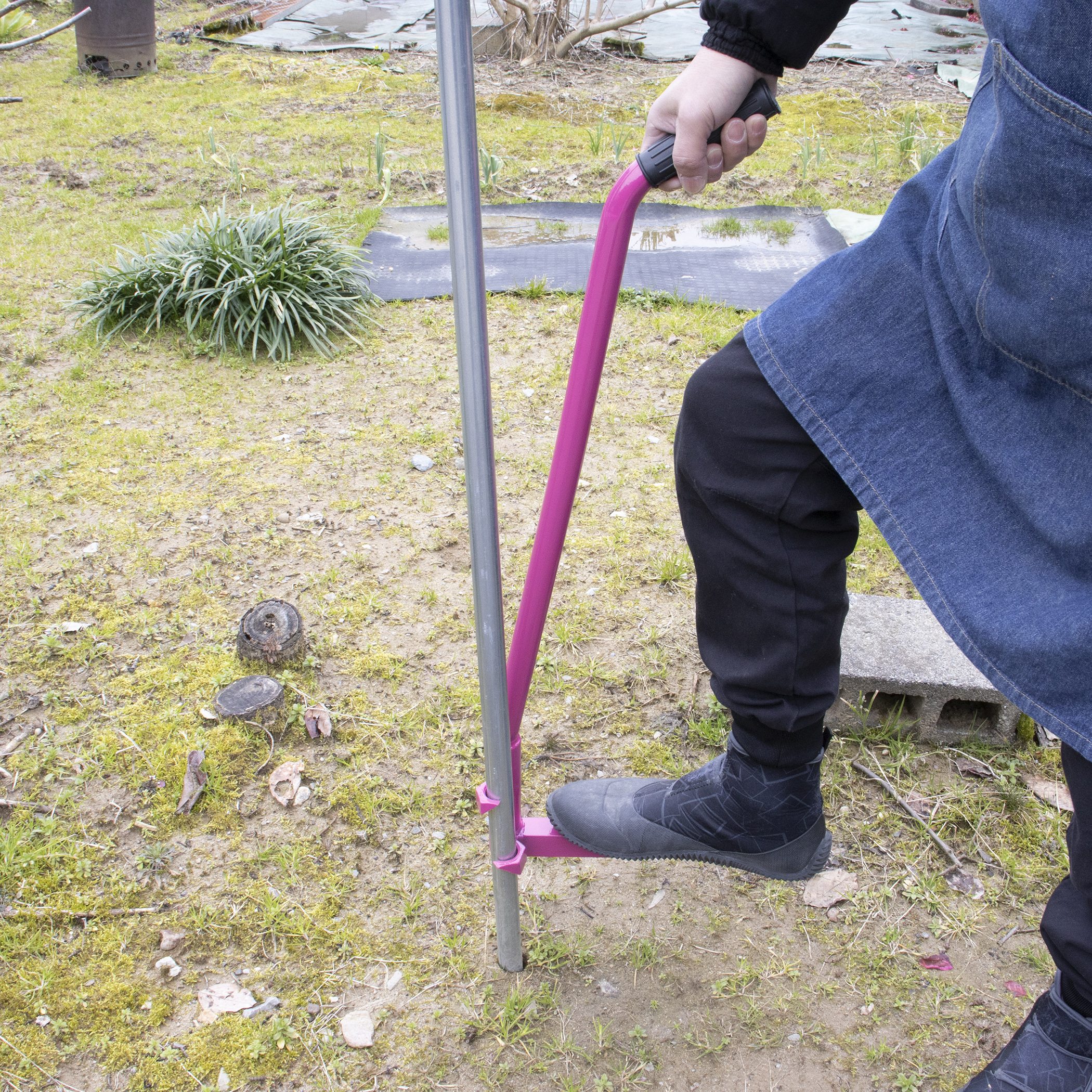 園芸用支柱・パイプを挿す道具と抜く補助器具です。