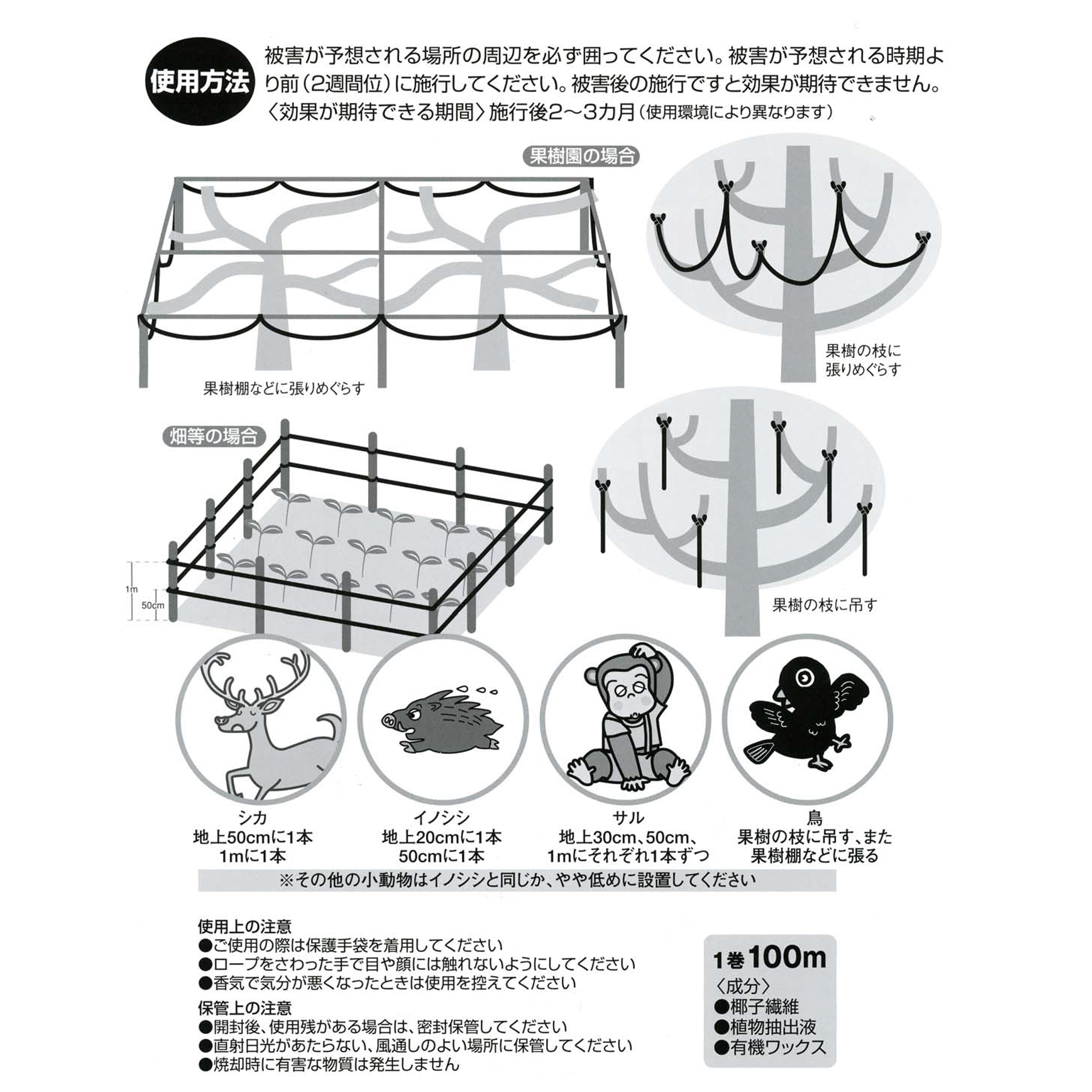 どうぶつロープ 100m巻 防獣 防鳥 獣対策 (4580291110030)