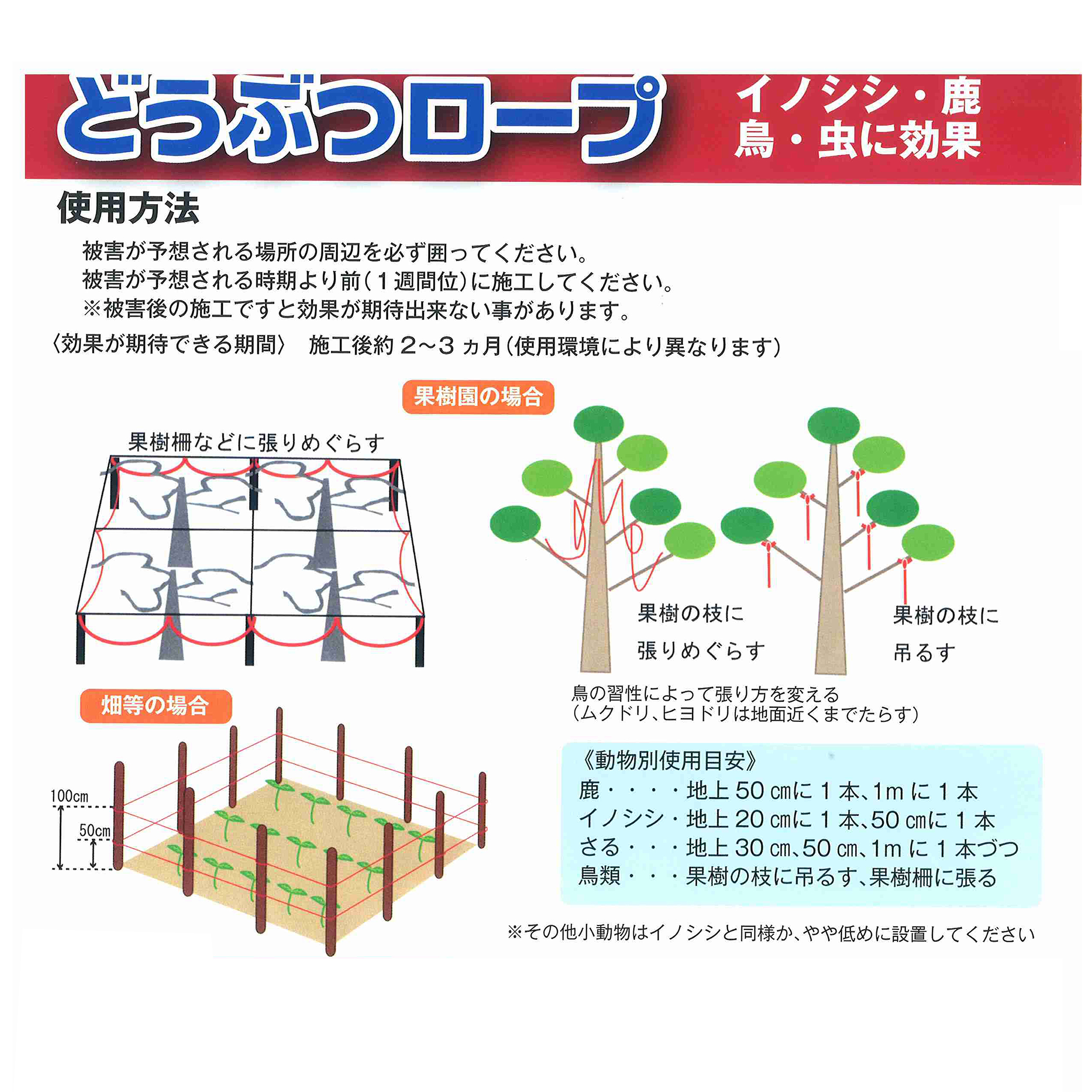 ※動物の種類、時期、また囲う作物によって効果がでにくい場合があります。
