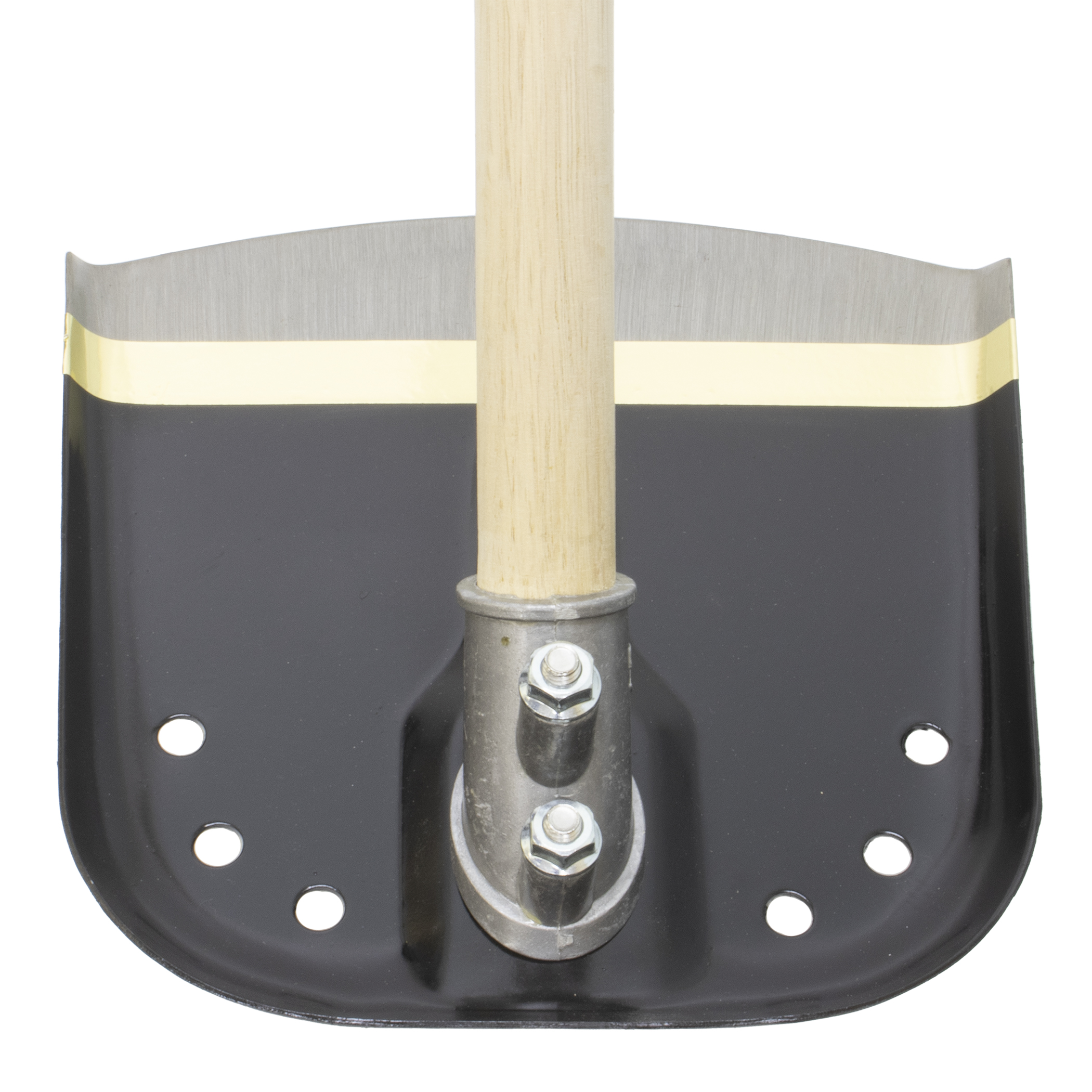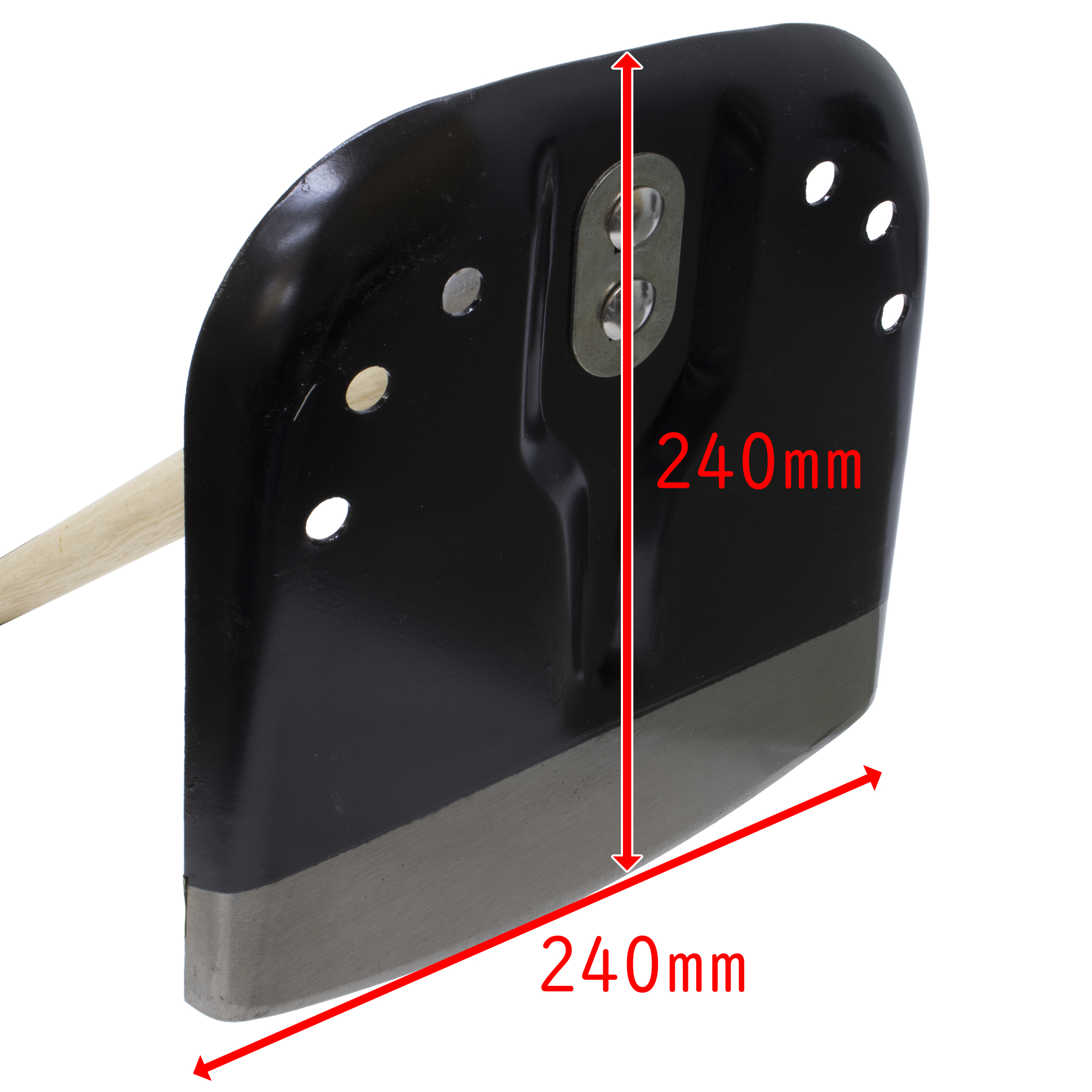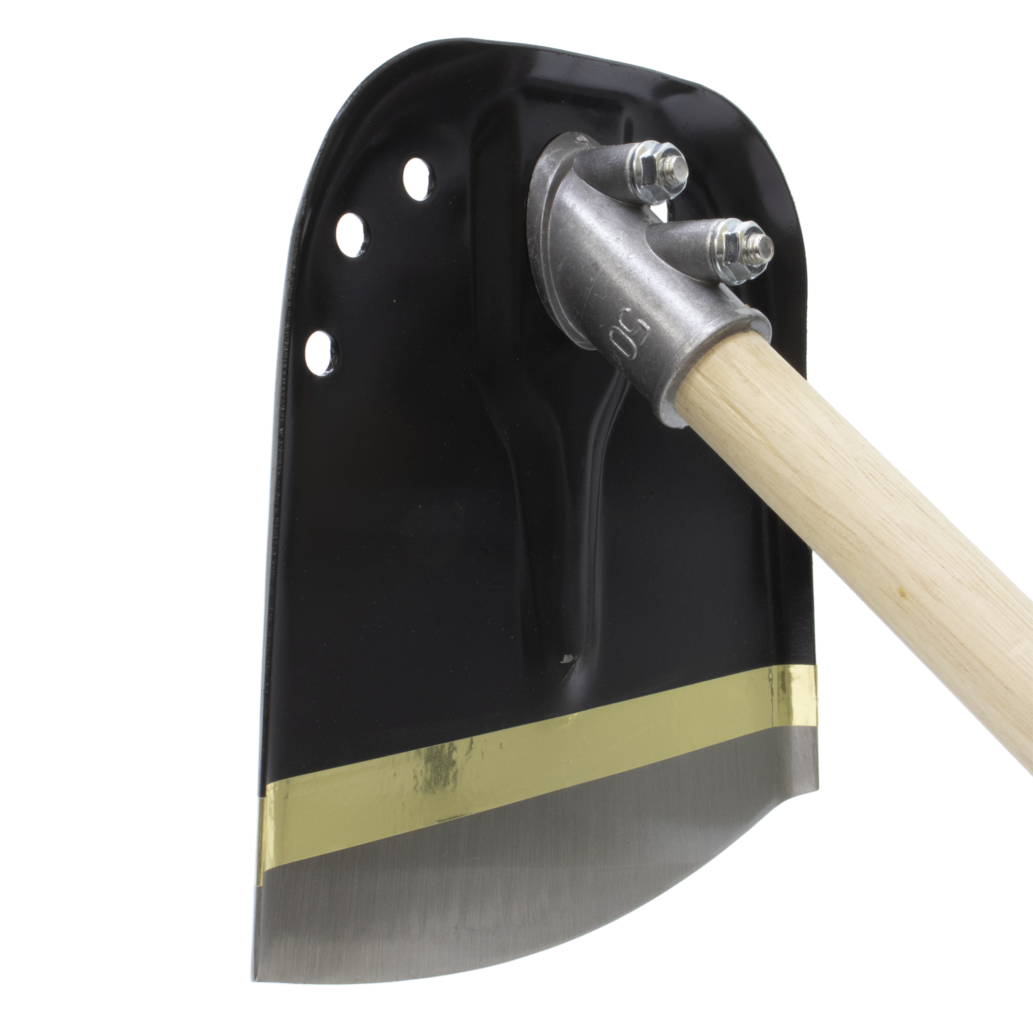 - 頭部は土をすくい易くこぼれにくいようにふちを曲げています。頭部両側に3箇所の穴があり水抜き効果もあります。