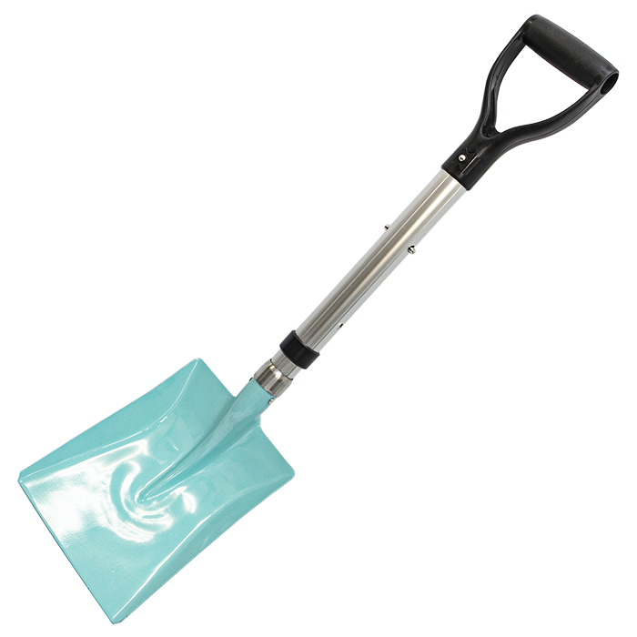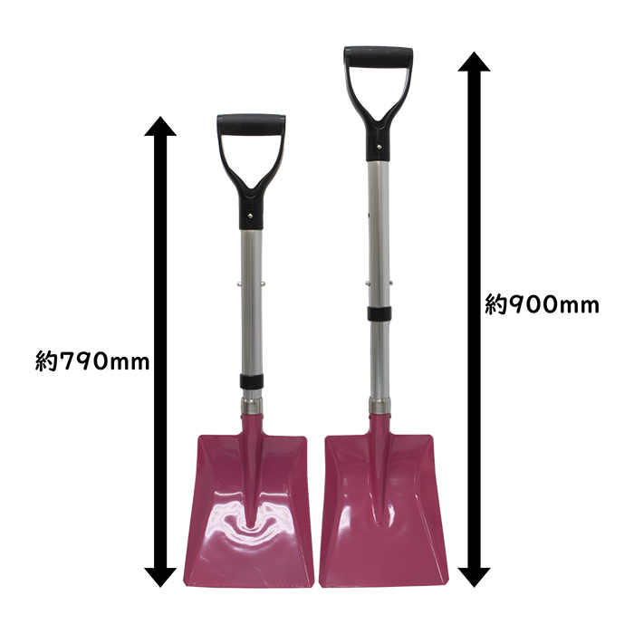 軽量で使いやすいアルミ製の柄と、 強度のあるスチール製の頭を組み合わせた 伸縮2段式の車載スコップです。 全長:790mm・900mm スコップ先幅:220mm 重量:1280g